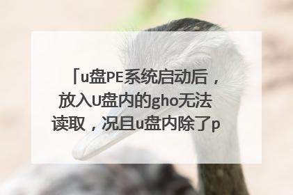u盘PE系统启动后,放入U盘内的gho无法读取,况且u盘内除了pe系统文件 其他都文件都无法查看? 你好,做的启动U盘数据不对,先把之前的启动U盘格式化,