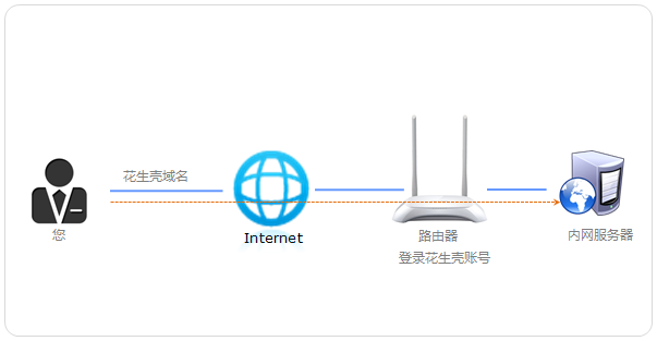 我司路由器内嵌了花生壳客户端,在路由器上登录花生壳后,可以将当前连接的宽带线路的公网IP与花生壳域名地址动态的关联起来。如果您需要在外网访问路由器下的服务器,只需要在路由器上设置虚拟服务器后以及登录花生壳的账号密码,就可以使用该域名访问内网服务器,无需理会动态变化的IP地址。