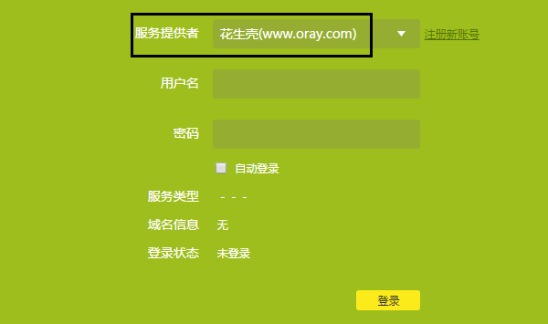 进入设置界面后,服务提供者选择花生壳(www.oray.com),如下图: