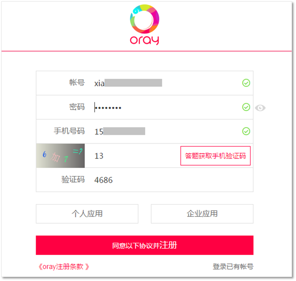 选择个人应用,即可注册成功,如下图: