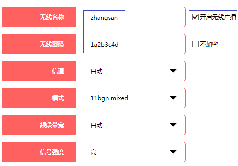 登录到主路由器的管理界面,点击界面右上角的?高级设置,再点击?无线设置?>>?主人网络,核对无线信号名称和密码,无线名称建议使用数字或字母,请勿使用中文或特殊字符。同时确保勾选了?开启无线广播。如下图: