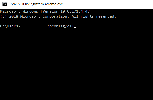 最后,在命令提示符下复制并粘贴此代码ipconfig / all,然后按Enter键