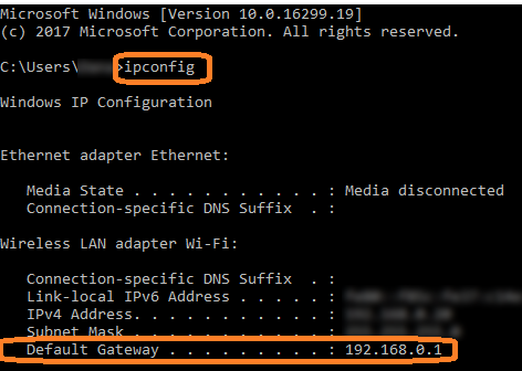 第一步是检查路由器的IP地址。在您的情况下,IP 很可能是 192.168.0.1,但如果您不确定,请检查默认网关,因为它代表路由器的 IP。