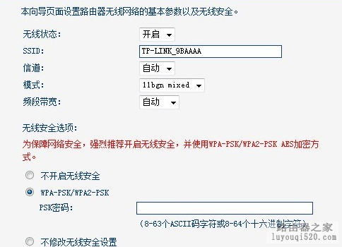 无线路由器才会有这一步,有线不会出现的。如果是无线路由,你在psk密码这栏里输入你要设置的无线密码就可以了,以后平板电脑、笔记本、手机等能无线上网的设备要用这个密码连接才能上网的!