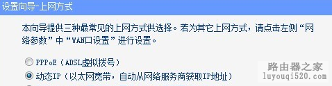 选第二个动态IP 或者选静态ip都行 为了省事一般选动态ip这个选项就可以了,选