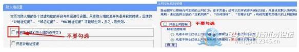 )检查您的路由器中是否设置了IP地址过滤或者MAC过滤,在路由器的管理界面中点击“安全设置——防火墙设置”或“上网控制”,不勾选“开启防火墙”或“开启上网控制”然后保存,再进行尝试打开网页。
