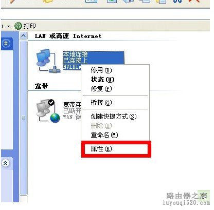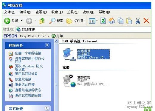xp系统下:进入控制面板-网络连接-本地连接如图