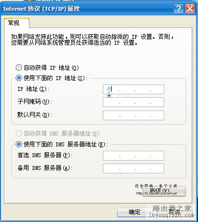 2、配置计算机的IP地址。让计算机的IP地址与路由器的IP地址在同一个网段,如:路由器的IP地址为192.168.1.1,我们就把计算机网卡的IP地址设置为192.168.1.2,掩码为255.255.255.0。如果路由器已经启用了DHCP服务,我们就不用为计算机配置IP地址了,让路由器的DHCP服务器为其分配IP。以下是为计算机配置IP地址的步骤: