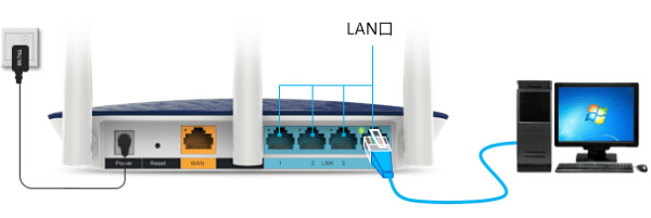 (2)通过网线连接:操作电脑需要与路由器的1/2/3/4任意一个LAN口连接,并确保路由器对应接口的指示灯亮起。192.168.1.1 路由器设置连接方法。