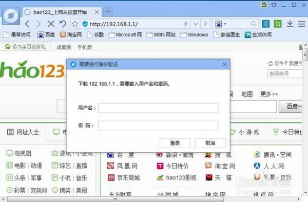 (3)在浏览器输入192.168.1.1,打开192.168.1.1的路由器登录页面,输入路由器的用户名和登录密码。