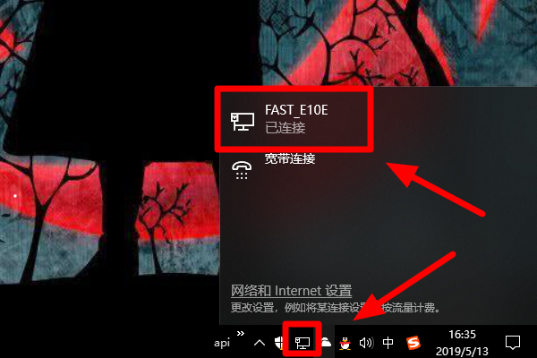 1、将路由器连接到电脑,点击电脑右下角的网络图标,可以看到已经连接的网络: