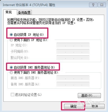 5.如果显示路由器连接正常,但我们通过浏览器还是等不了路由器,我们可以试着更改一下本地连接的IP地址,让IP地址进行自动获取!