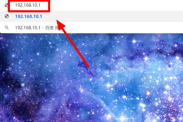 2、打开任意电脑浏览器,在浏览器的地址栏输入“192.168.10.1”,然后按回车键进行访问,需要注意的是不能用百度搜索这个ip: