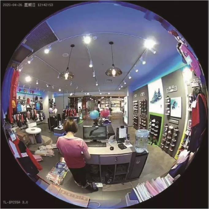 对于重要点位较少的场景,如只需监控出入口和 收银台的商铺,可将全景摄像机壁挂在监控点附近,既可时刻锁定重要点位,又可兼顾店铺其他位置的动态。