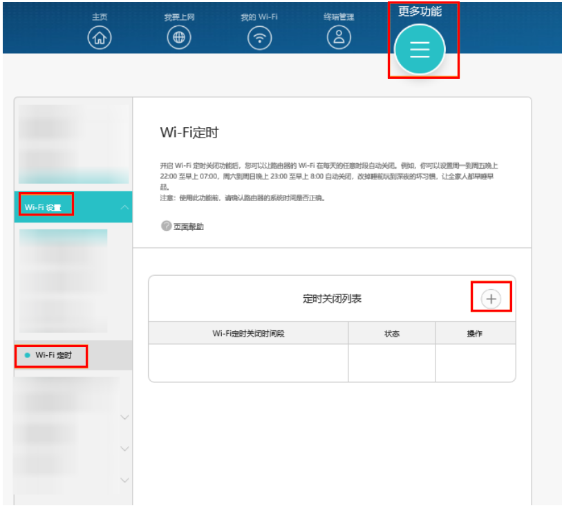 3. 点击更多功能 > Wi-Fi 设置 > Wi-Fi 定时。