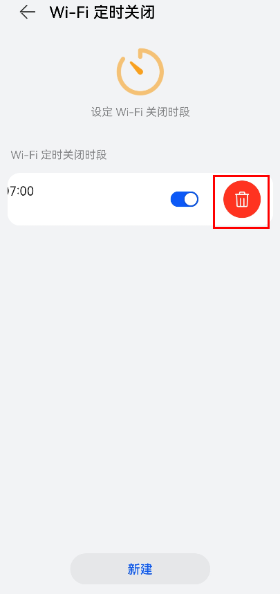 在Wi-Fi 定时关闭时段列表中,向左滑动需要删除的时段,点击删除图标,即可将已设置的对应时段删除。