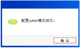2. 提示“配置SoftAP模式成功”,点击“确认”,如下图:
