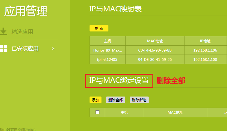 进入主路由器管理界面,检查此项功能确保其为“不启用”状态。下图示例了云路由器和老款路由器不启用IP与MAC映射表的方法,您按需参考即可。