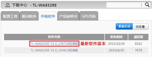 点击下载中心,输入无线扩展器的型号,下载对应的升级软件,如下图: