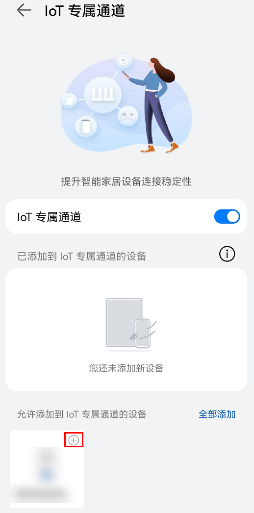 o 添加设备:点击设备右上角 图标,将设备添加到 IoT 专属通道。