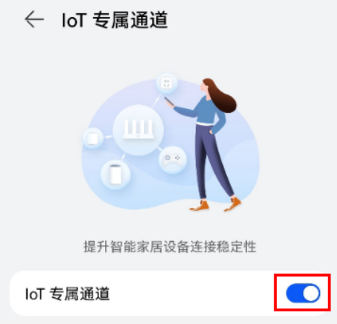 “IoT 专属通道”是路由器的一个特色功能,当家里的智能家居设备(智能电灯、饮水机、扫地机器人、智能插座等)接入到路由器时,可以自动加入到 IoT 专属通道,加入后能改善连接稳定性。“IoT 专属通道”功能开启后,不会影响未加入 IoT 专属通道的设备。