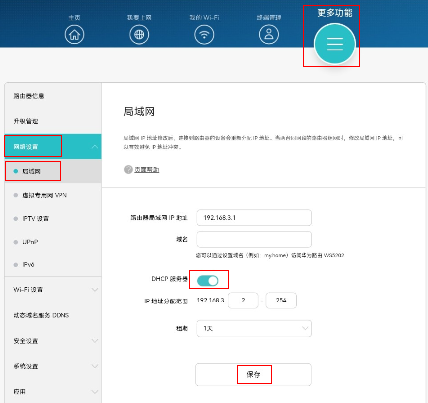 3. 点击我的 Wi-Fi,在安全这一栏修改路由器的加密方式,点击保存,即可生效。