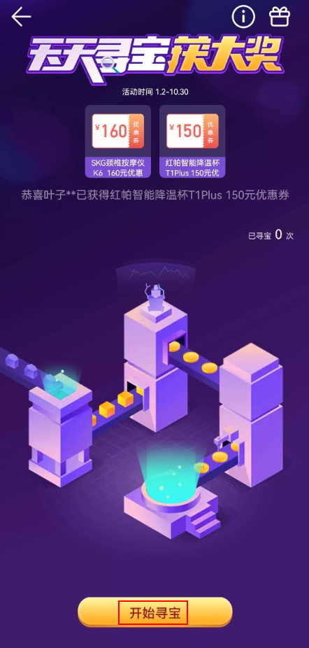 天天寻宝是智慧生活 App 内的一款小游戏,寻到宝贝可以获得相应的奖品。