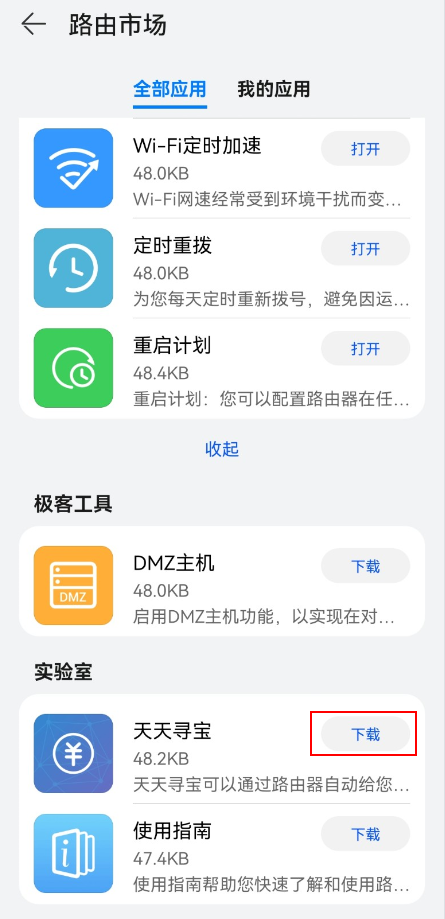 华为路由器通过智慧生活 App 设置路由器的“天天寻宝”应用