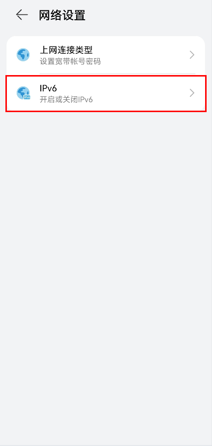 5. 点击IPv6。点击 IPv6 开关,开启或关闭 IPv6 功能。