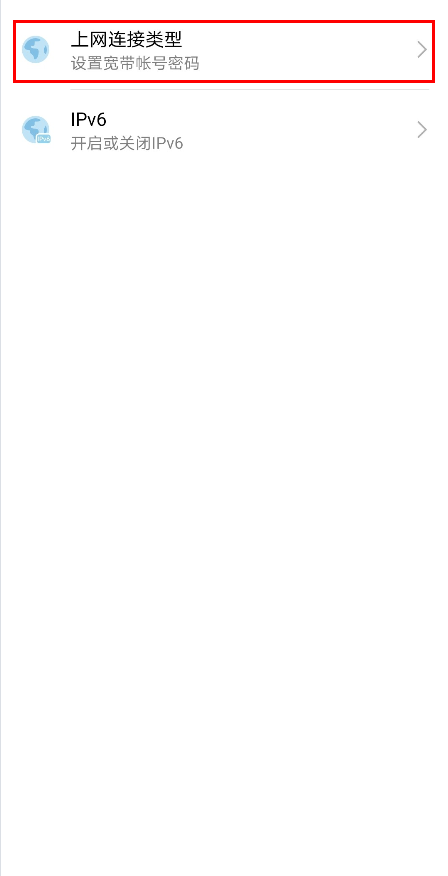 5. 点击上网连接类型,根据您当前的网络环境选择上网连接类型。