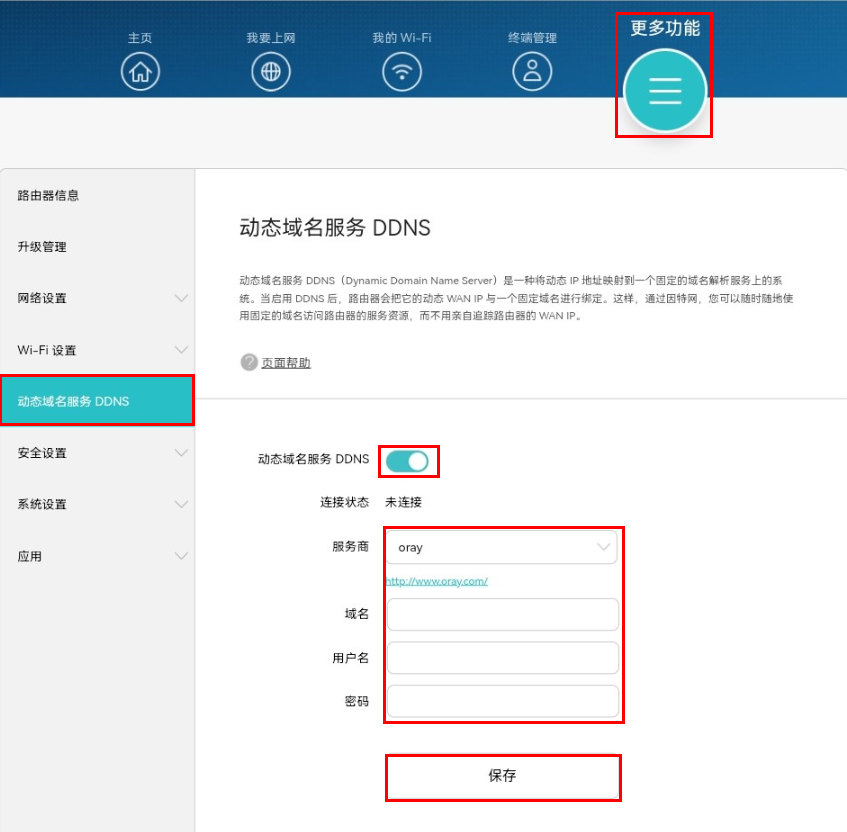 3. 点击我的 Wi-Fi,在安全这一栏修改路由器的加密方式,点击保存,即可生效。