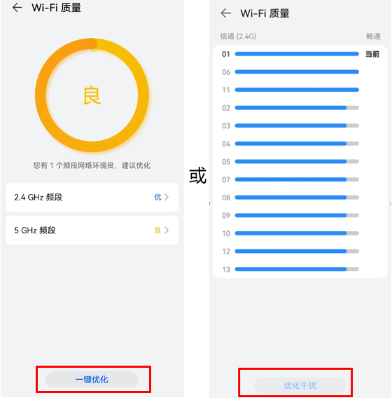 ? 信道优化时,手机/平板等终端网络设备会短暂掉线,待优化完成后请重新连接 Wi-Fi。