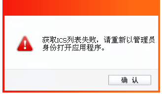 4.?配置模拟AP时,提示“获取ICS列表失败,请重新以管理员身份打开应用程序。”(如下图)