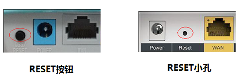 一般情况下,您可以按照复位指导,使用路由器壳体上的RESET按钮或小孔进行硬件复位: